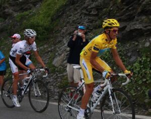 Andy Schleck (à esquerda) e Alberto Contador (à direita) no Tour de France de 2009. filip bossuyt de Kortrijk, Bélgica • CC BY 2.0