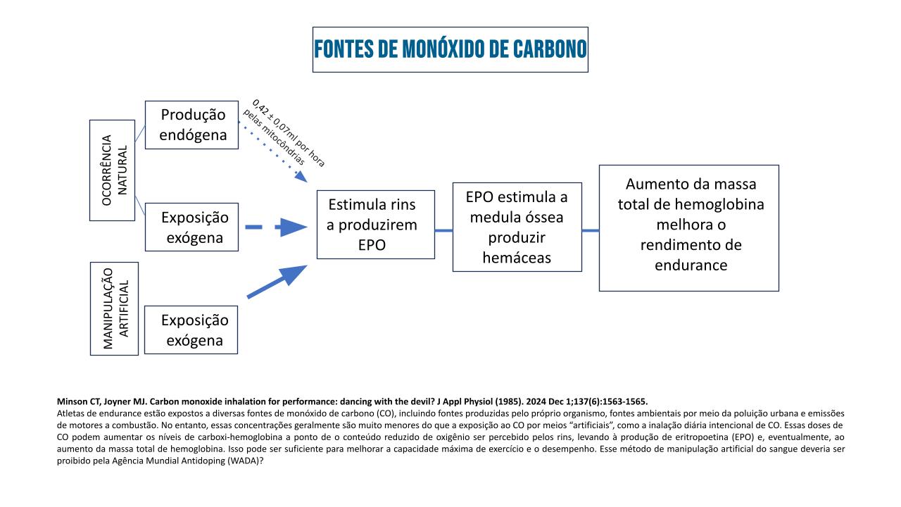 Tradicionalmente, o CO era utilizado apenas como ferramenta de medição: sua ligação com a hemoglobina permite “marcar” os glóbulos vermelhos para avaliar a massa total de hemoglobina (MTHb). No entanto, a exposição crônica e controlada ao CO pode induzir a produção de EPO de forma semelhante ao que ocorre em fumantes crônicos — que frequentemente apresentam hematócrito elevado devido à presença contínua do gás no organismo.
