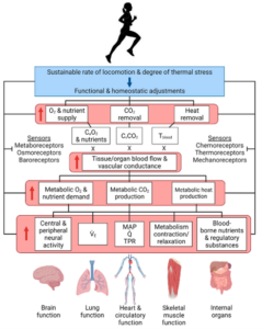 Fonte: Travers G, Kippelen P, Trangmar SJ, González-Alonso J. Physiological Function during Exercise and Environmental Stress in Humans—An Integrative View of Body Systems and Homeostasis. Cells. 2022; 11(3):383.