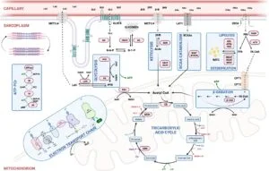 Essa aparente discrepância entre cargas leves e adaptações robustas dissipa-se quando analisamos os mecanismos celulares ativados pelo exercício aeróbio contínuo. Sessões longas em baixa intensidade geram estímulos moleculares sustentados, mediados por fluxos repetitivos de Ca²⁺ intracelular, pelo aumento prolongado do shear stress vascular e por sinais energéticos de baixa magnitude decorrentes do acúmulo de grande volume semanal. Esses sinais ativam rotas como CaMKII, AMPK e p38-MAPK, importantes sensores celulares expressos predominantemente no músculo esquelético — embora também presentes em cardiomiócitos e células endoteliais — que regulam o equilíbrio energético, o metabolismo oxidativo e a expressão gênica adaptativa. A CaMKII (Ca²⁺/calmodulina-dependente), por exemplo, responde a oscilações do cálcio intracelular e participa da regulação da oxidação lipídica e da biogênese mitocondrial. A AMPK, por sua vez, é o sensor energético mestre da célula: é ativada quando há aumento da razão AMP/ATP e atua para restaurar a homeostase, promovendo transporte de glicose, oxidação de gorduras e estímulo a PGC-1α. Já a p38-MAPK integra sinais mecânicos, oxidativos e inflamatórios, modulando transcrição de genes estruturais e metabólicos. ROS — espécies reativas de oxigênio produzidas em baixa quantidade durante o exercício — funcionam como moduladores finos da fosforilação dessas vias, agindo não como agentes de dano, mas como mensageiros essenciais à adaptação.